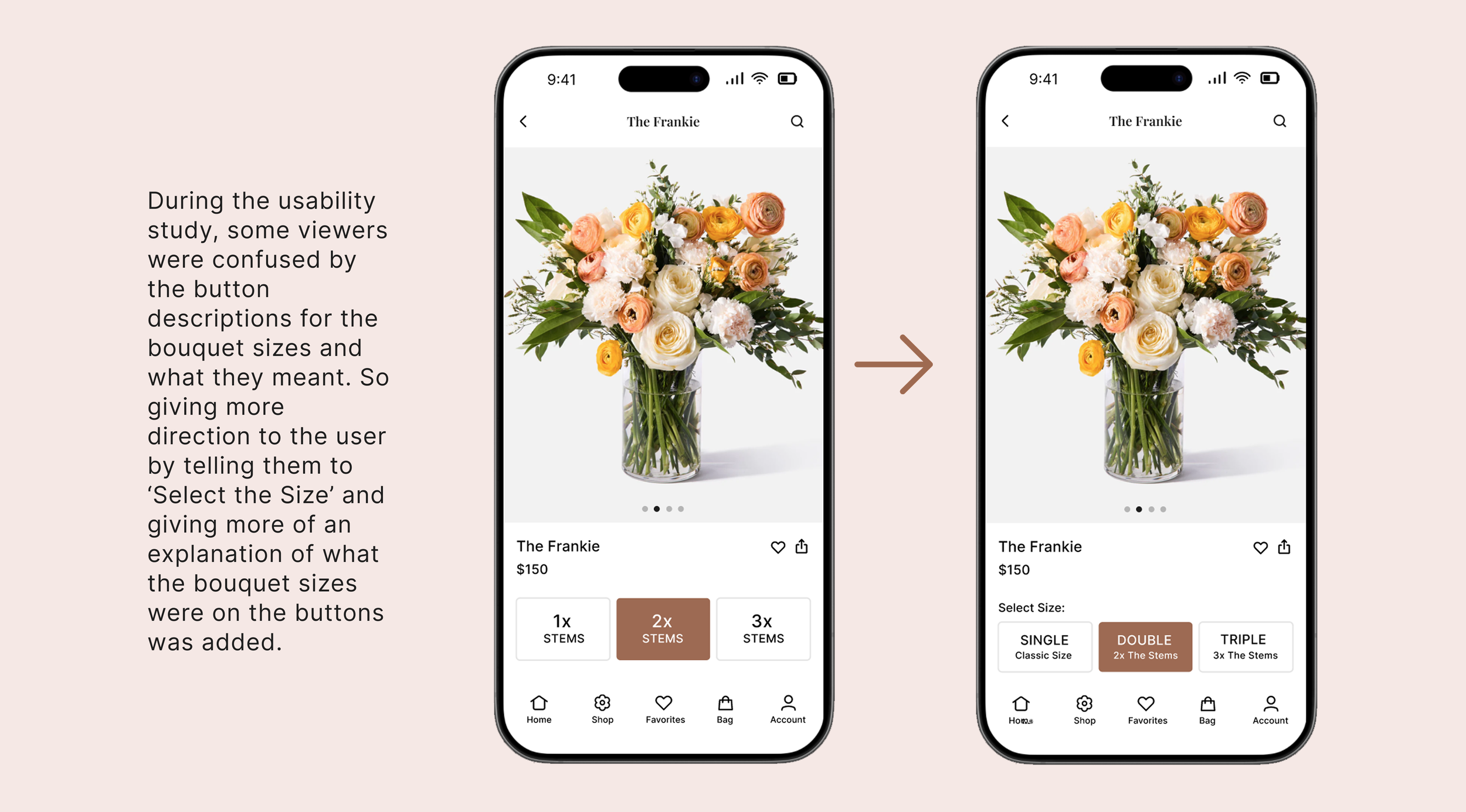 Users struggle to understand the size differences between bouquet options, making it difficult to choose the right one. Without clear visuals or size comparisons, they may worry about whether the bouquet will meet their expectations.